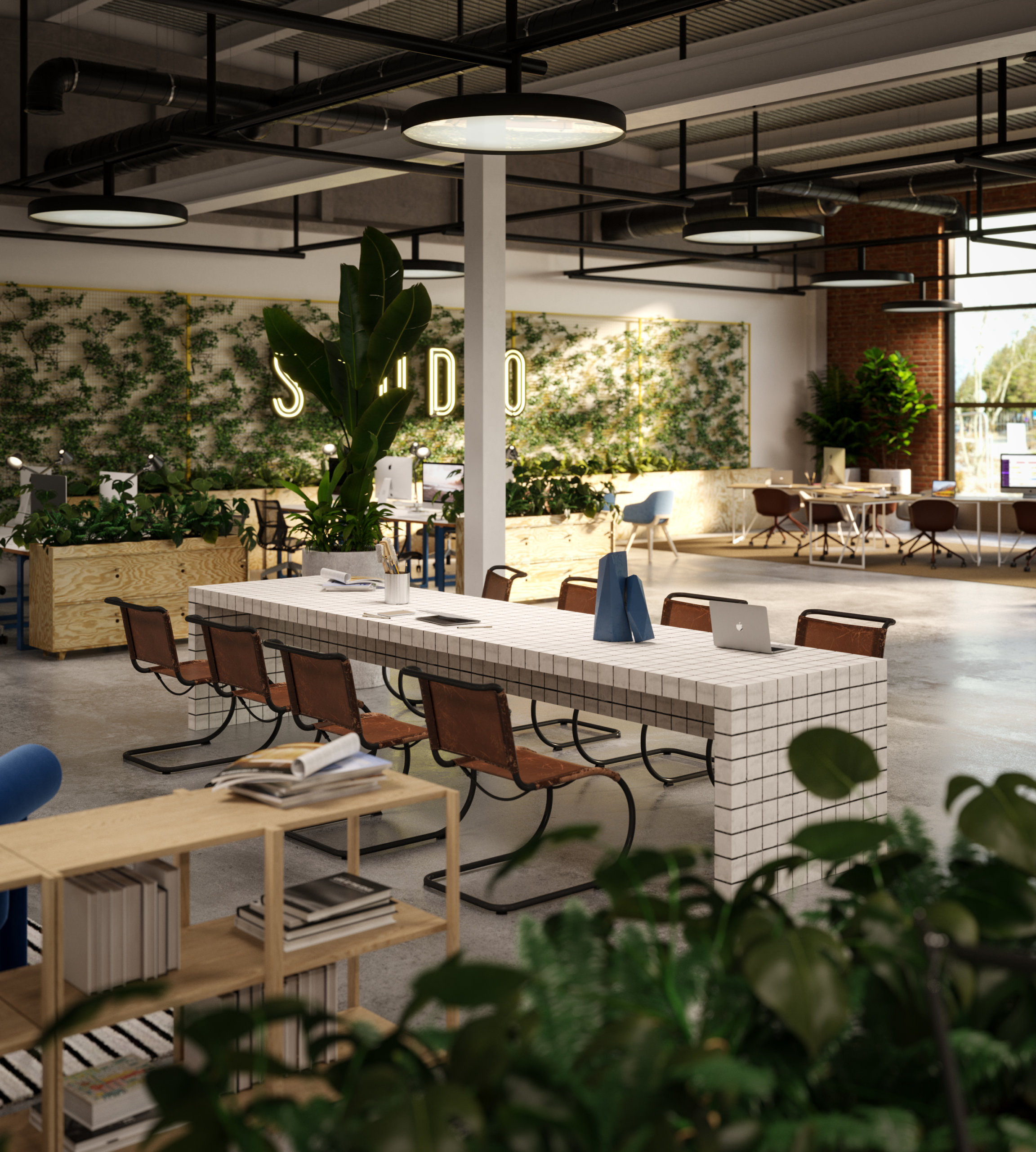 Industrial spaces don’t have to be boring. And this refurbishment of the largest postal sorting office in Sweden by JLL is the perfect embodiment of that. The goal was to refurbish the space with creative offices that offered fantastic access to industrial space and warehouse logistics. The project resulted in a light-filled, clean, and minimalist warehouse with fun, green, and spacious offices.