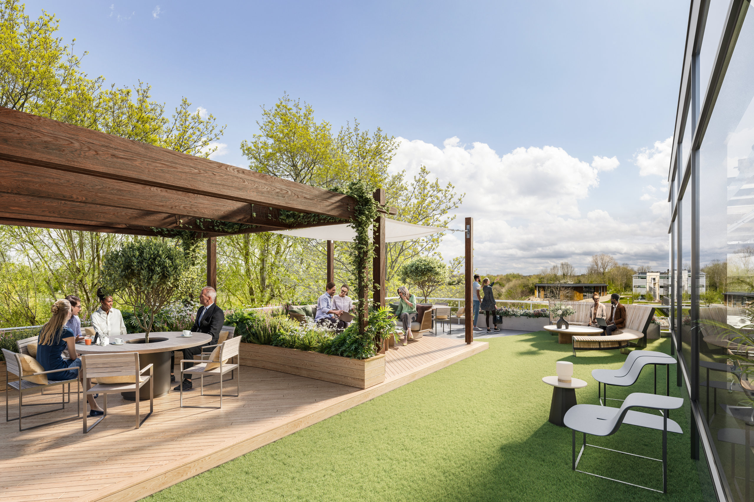 To illustrate the potential of Building 01, we created 6 CGIs to showcase how the office space could be brought to life to fit the needs of different prospective tenants. We also produced an animation to show Building 01 in the context of the broader surroundings of ARC Uxbridge and the vast amenities on offer.